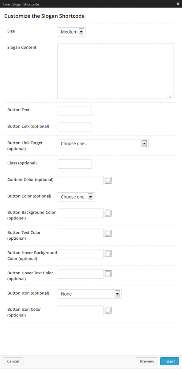 Slogan Shortcode Options Panel